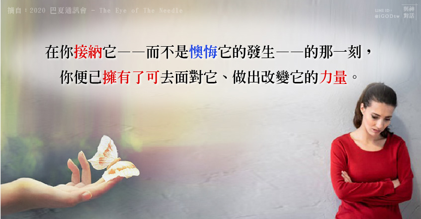 因為在你接納它——而不是懊悔它的發生——的那一刻,你便已擁有了可去面對它、做出改變它的力量。