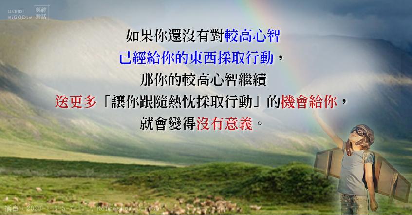 而如果你沒有對自己的熱忱採取那些行動,如果你還沒有對較高心智已經給你的東西採取行動,那麼,你的較高心智繼續送更多「讓你跟隨熱忱採取行動」的機會給你,就會變得沒有意義