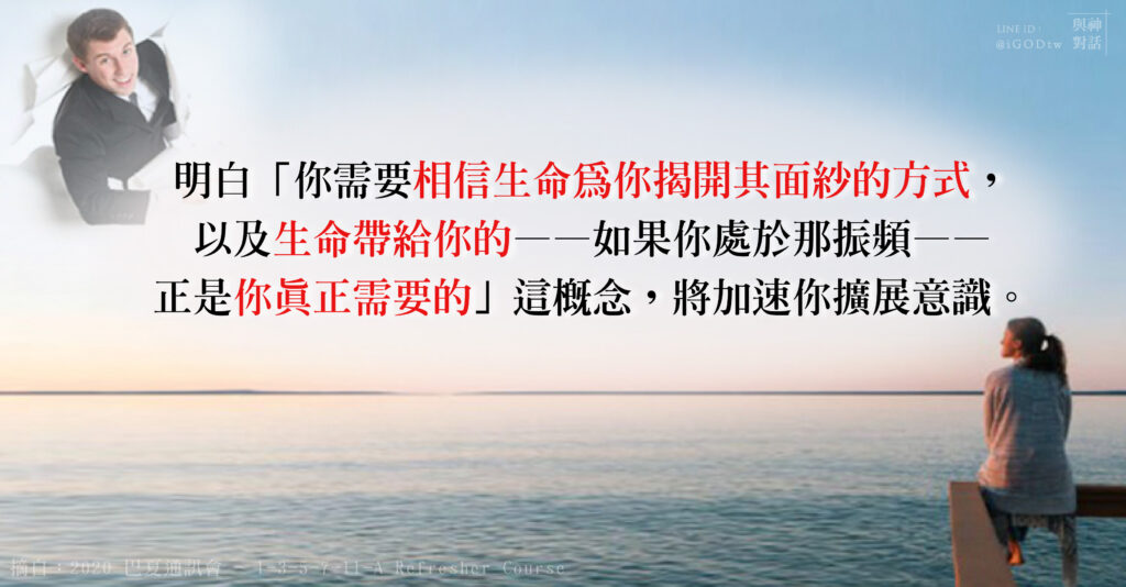 但重點是:你必需明白「你需要相信生命為你揭開其面紗的方式,以及生命帶給你的——如果你處於那振頻——正是你真正需要的」這概念。