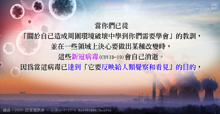最終,當你們已從「關於自己造成周圍環境破壞中學到你們需要學會」的教訓,當這新冠病毒已達到「它要反映給人類覺察和看見」的目的,