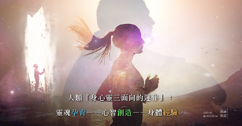 靈魂永遠不會淩越身體或心智。我造你們為一個三合一的生靈。你們是三個面向(身體、心智、靈魂)合而為一的生命,按照我的形象形象與模樣造出的。