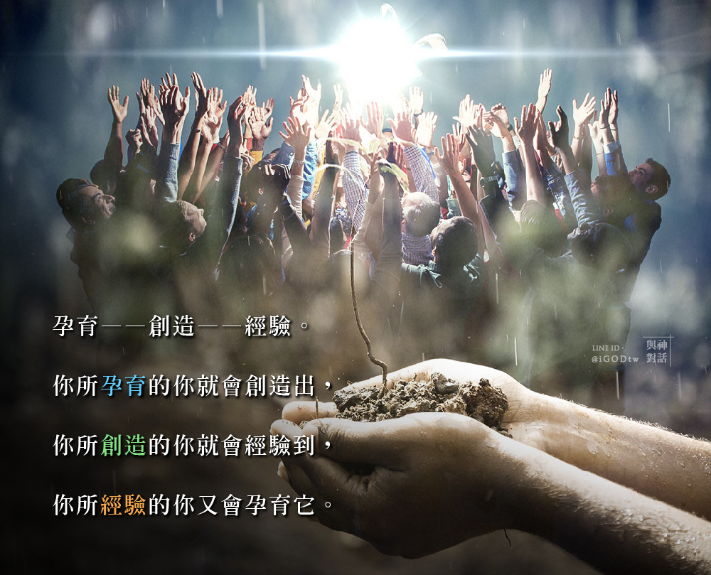 孕育——創造——經驗。你所孕育的你就會創造出,你所創造的你就會經驗到,你所經驗的你又會孕育它。