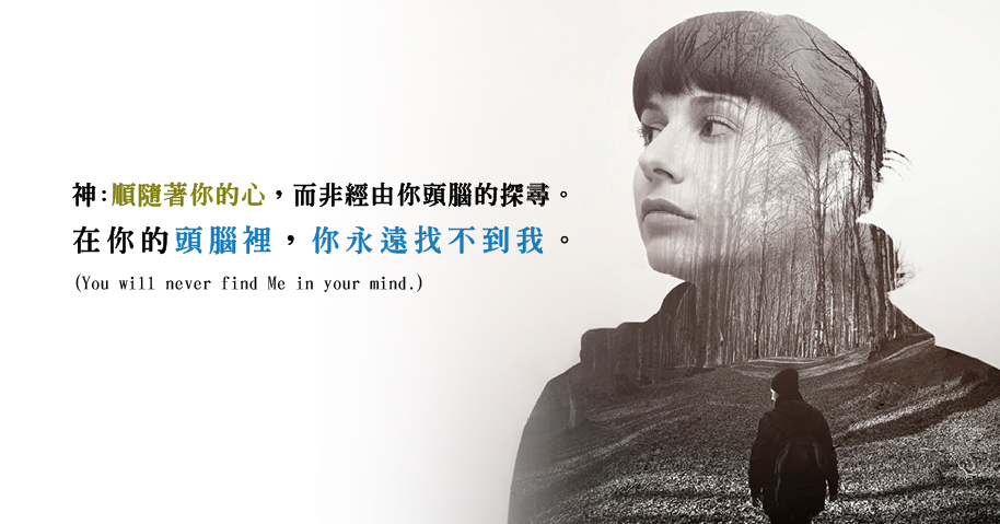 每一顆真誠詢問「通往神的路是哪一條」的心,都被示以那條路。每一個都被給予了一個至誠的真理:順隨著你的心來到我這裡,而非經由你頭腦的探尋。在你的頭腦裡,你永遠找不到我。(Come to Me along the path of your heart, not through a journey of your mind. You will never find Me in your mind.)