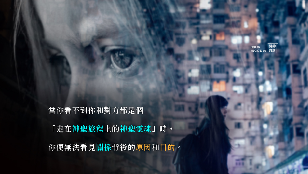 當你看不到你和對方都是個「走在神聖旅程上的神聖靈魂」時,你就無法看見在所有關係背後之原因和目的。