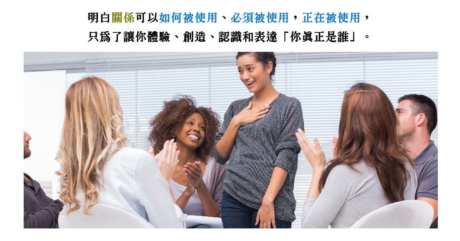 沒有任何比在關係裡面「你更能即刻地、具衝擊力地,並且完美無瑕地做到」上述這點的地方。事實上,沒有「關係」,你們完全無法做到(In fact, without relationships, you cannot do it at all.)。唯有透過你與其他人們、地方及事件的關係,你才能夠在宇宙裡存在(作為一個可知的量體,作為一個可被認明的某物)。