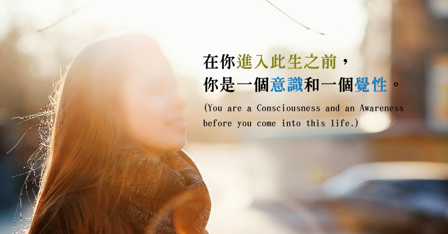 你進入你的人生,意圖以特殊的方式,爲了特殊理由去體驗你自己(Self 本我)。在你進入此生之前,你是一個意識和一個覺性 (You are a Consciousness and an Awareness before you come into this life.)。那就是說,在你出生之前,你存在爲一個「存有體」,一個「生命體」(you exist as an entity, as a Being)。