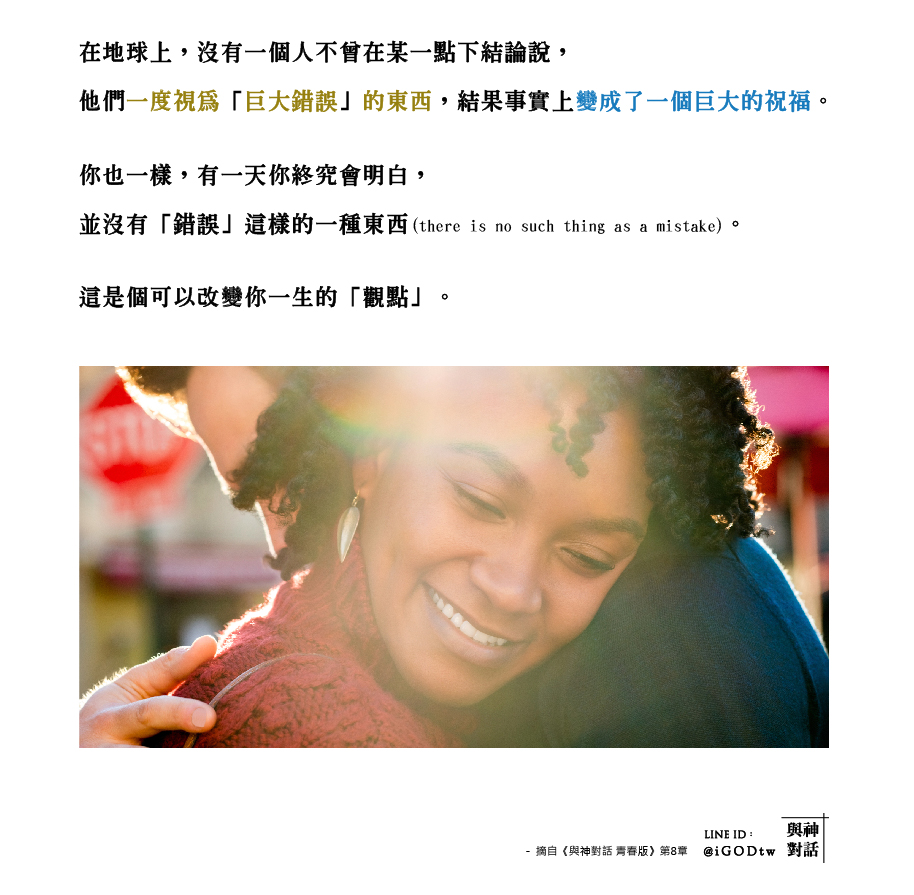 你也一樣,有一天你終究會明白,並沒有「錯誤」這樣的一種東西(there is no such thing as a mistake)。