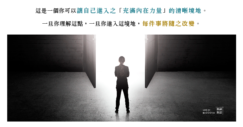 這是一個你可以讓自己進入之「充滿內在力量」的清晰境地。一旦你理解這點,一旦你進入這境地,每件事將隨之改變。