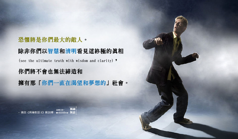 恐懼將是你們最大的敵人。除非你們以智慧和清明看見這終極的真相(see the ultimate truth with wisdom and clarity),你們將不會也無法締造和擁有那你們一直在渴望和夢想的社會。