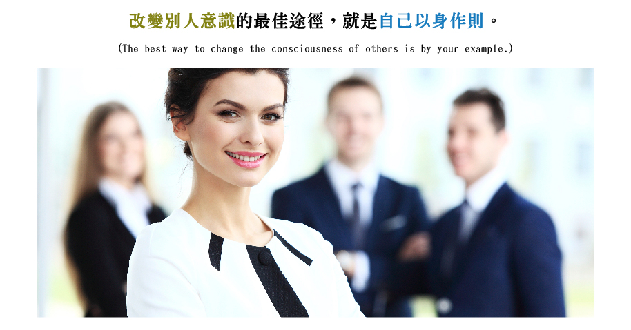 改變別人意識的最佳途徑,就是你以身作則。(The best way to change the consciousness of others is by your example.)