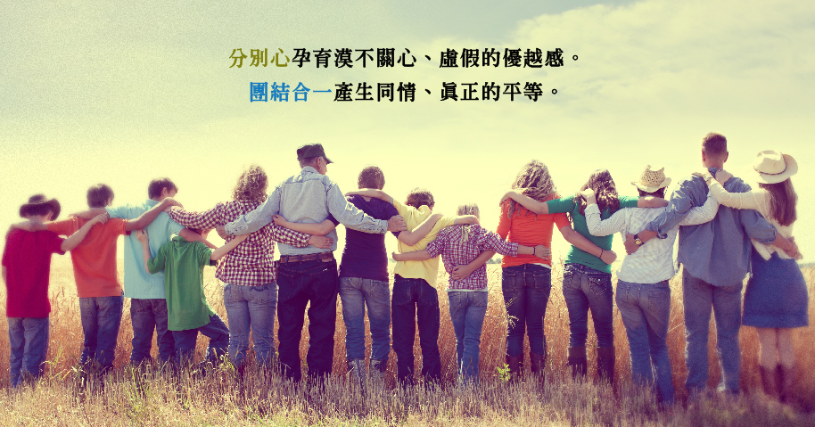 分別心孕育漠不關心、虛假的優越感。團結合一產生同情、真正的平等。