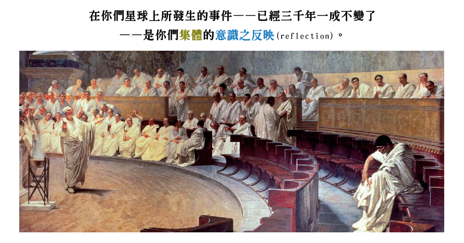 在你們星球上所發生的事件——已經三千年一成不變了——如我說的,是你們群體——你們整個星球上的人群——的集體意識之反映(a reflection of the Collective Consciousness)。