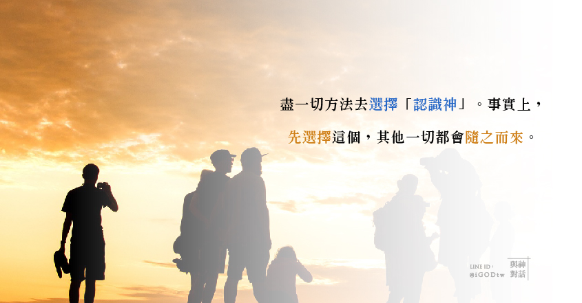 而務必想盡一切方法去選擇「認識神」。事實上,先選擇這個,其他一切都會隨之而來。