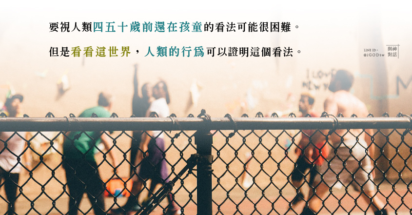 尼爾:人類有四十年或五十年的時間,自己還在「孩童」期?(Human beings are “children themselves” for 40 or 50 years?)
