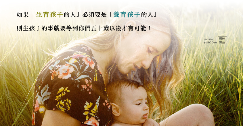 如果「生育孩子的人」必須要是「養育孩子的人」,則生孩子的事就等要到你們五十歲以後才有可能!