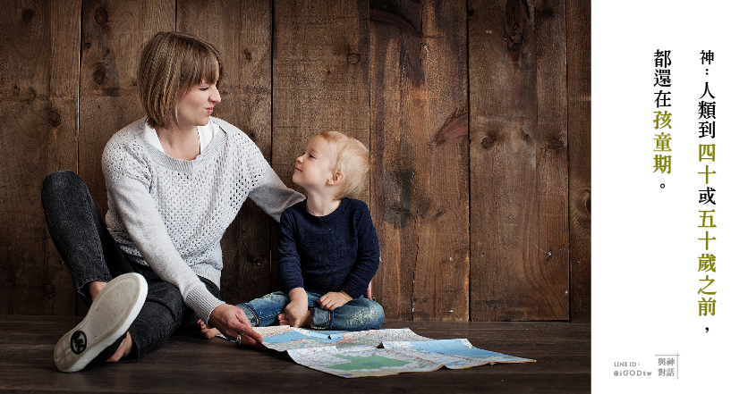 當人類在生理上還有能力生育孩子時,自己尚是個孩子(Human beings are biologically capable of creating children while they are children themselves)。這點可能會讓你們大部分人很吃驚,人類這樣的孩童期是四十或五十年的時間(註:神的意思是人類的孩童期,不是我們一般認為的一二十年,或二三十年。也就是說,人類到四五十歲之前,都還在孩童期。)。