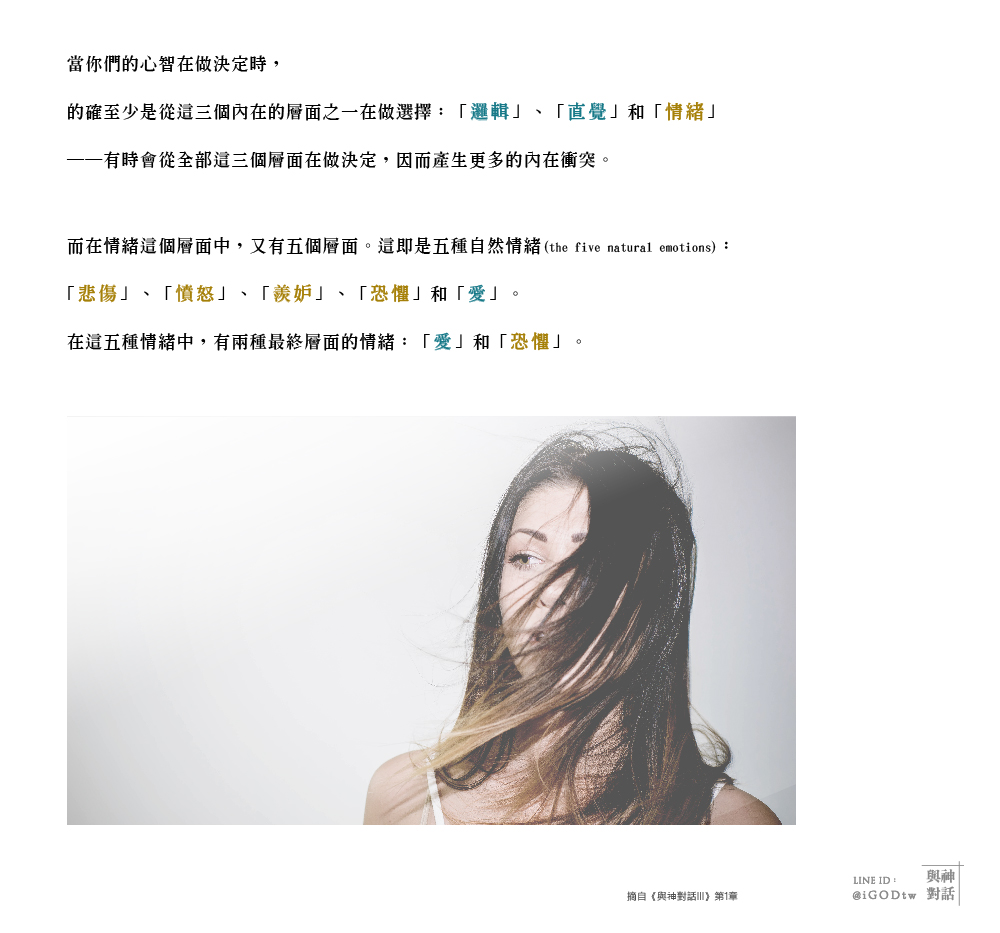 歡迎參閱這段人類【心智「做決定」時的三個內在層面(身體/心智/靈魂所對應之情緒/邏輯/直覺)和五種情緒】的解說: