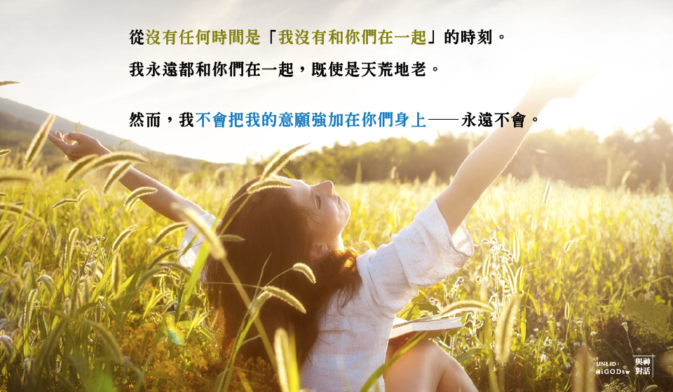 我告訴你:從沒有任何時間是「我沒有和你們在一起」的;從沒有任何時刻是「我沒有準備好」的。