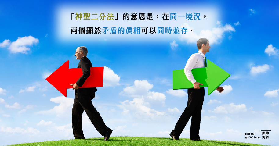 你看出了嗎,這神聖教誨是一種「神聖二分法」(Divine Dichotomy)——在同一情境事件上兩個顯然矛盾的真相可以同時並存的一種經驗(an experience within which two apparently contradictory truths can exist in the same space at the same time)。