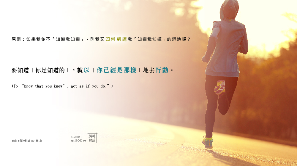 要知道「你是知道的」,就以「你已經是那樣」地去行動。(To “know that you know”, act as if you do.”)