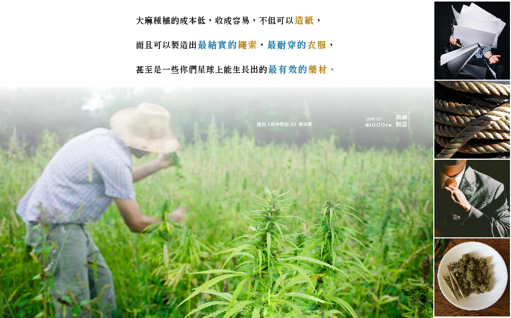 歡迎各界嚴格檢驗這段「與神對話信息」神所說的內容,是否真實:「大麻是你們星球上最有用、最強、最耐用的材料之一。你們製造不出比它更好的衣料、更結實的繩材、更容易收成的紙漿材料——大麻可以供應你們數百萬份的報紙,而不用砍一棵樹!」