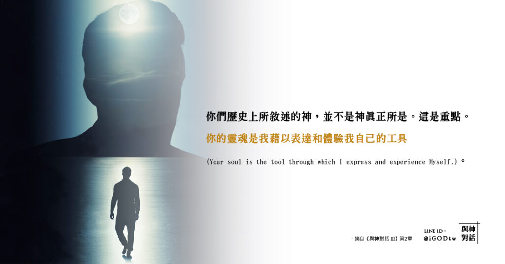 這種認識的渴望,正是生命尋求成為的。這是神,選擇要表達的。你們歷史上(所敘述)的神,並不是神真正所是的(本質、型態與模樣)。這是重點。你的靈魂是我藉以表達和體驗我自己的工具(Your soul is the tool through which I express and experience Myself.)。