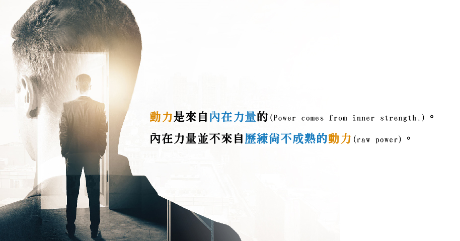 動力是來自內在的力量(Power comes from inner strength.)。內在力量並非來自歷練尚不成熟的動力(raw power)。而在這一點的認知上,大部分的世人都搞反了。