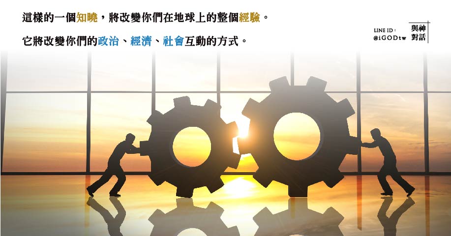 這樣的一個知曉(knowing),將改變你們在地球上的整個經驗。它將改變你們的政治、你們的經濟、你們的社會互動、你們教育年輕人的方式。最後,它會帶給你們——人間天堂。