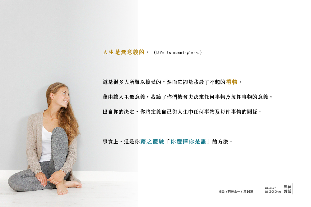 前幾篇神不是才說「意義是從『你所 being 的狀態』湧現的(Out of your state of beingness will meaning spring.)」,為何神現在又說「人生是無意義的」呢?