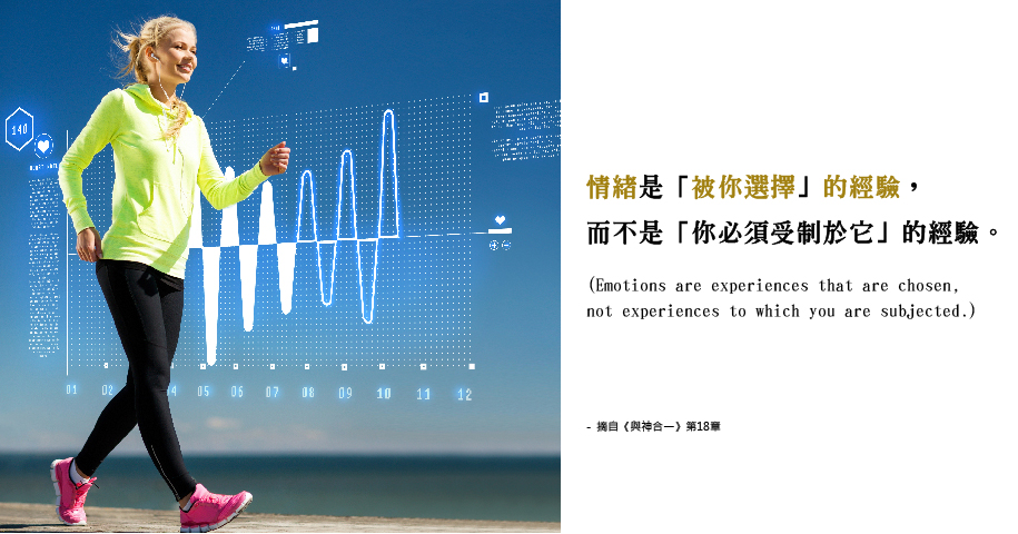 情緒是「被你選擇」的經驗,而不是「你必須受制於它」的經驗 (Emotions are experiences that are chosen, not experiences to which you are subjected.) 。這並不是個大部分人都能懂的事。
