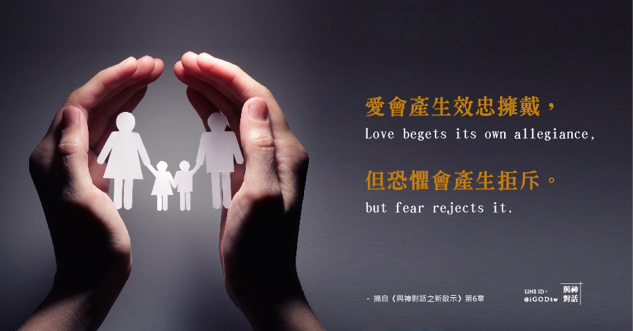 只有一個充滿恐懼的神才會這麼做。充滿愛的神絕不會這麼做,祂無須這麼做,因爲愛會産生效忠擁戴,但恐懼會產生拒斥(For love begets its own allegiance, but fear rejects it.)。