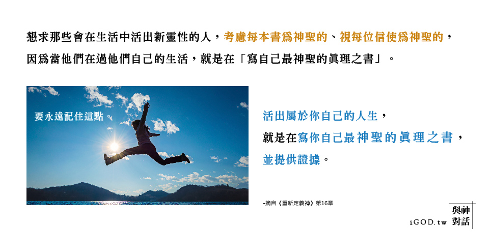 活出屬於你自己的人生,就是在寫你自己最神聖的真理之書,並提供證據 。(The living of your own life writes the book of your most sacred truth, and offers evidence of it.)