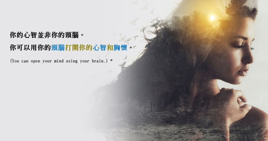你的頭腦是你身體的一部分。你的心智並非你的頭腦,但,你可以用你的頭腦打開你的心智和胸懷 (Your mind is not your brain, but you can open your mind using your brain.)。