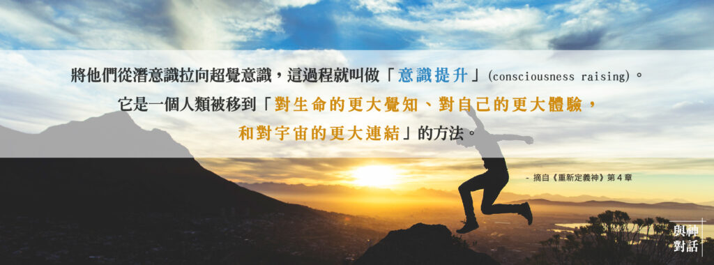 整套「與神對話」系列的內容和對白,都是設計來做為一種「一步步釋放人類受限的感知」之過程。也就是說,將他們從潛意識拉向超覺意識。這過程就叫做「意識提升」 (consciousness raising)。它是一個人類被移到「對生命的更大覺知、對自己的更大體驗,和對宇宙的更大連結」的方法。