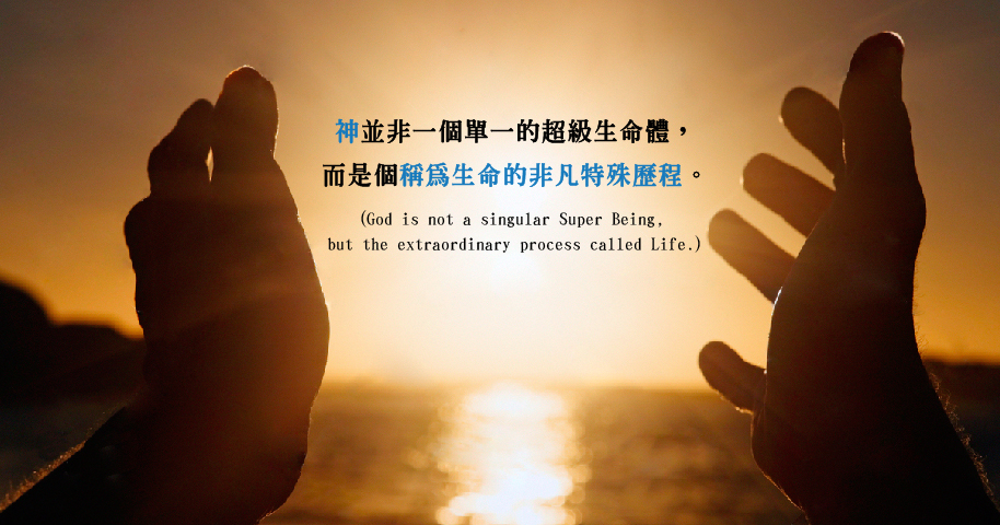 神並非一個單一的超級生命體,而是個稱為生命的非凡特殊歷程。(God is not a singular Super Being, but the extraordinary process called Life.)
