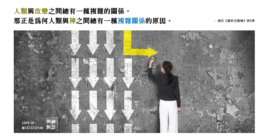 人類與改變之間總有一種複雜的關係。人類並不是很喜歡改變。而那正是為何人類與神之間總有一種複雜關係的原因。
