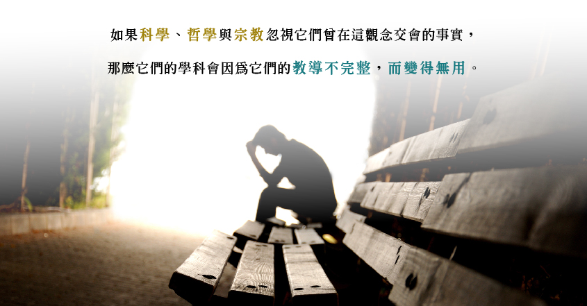 這並不是個新觀念。這並非「新思維」或「新時代」的觀念。你們許多科學家和哲學家幾世紀以來,都一直在這樣說。事實上,這觀念是個科學、哲學與宗教相遇的交叉路口。跨越這個交會點後,三者往各自的方向前進,繼續發展它們自己的路,但如果它們忘記或忽視它們曾在這觀念交會的事實,那麼它們將會有危險!它們的學科(disciplines)會因為它們的教導不完整,而變得無用。