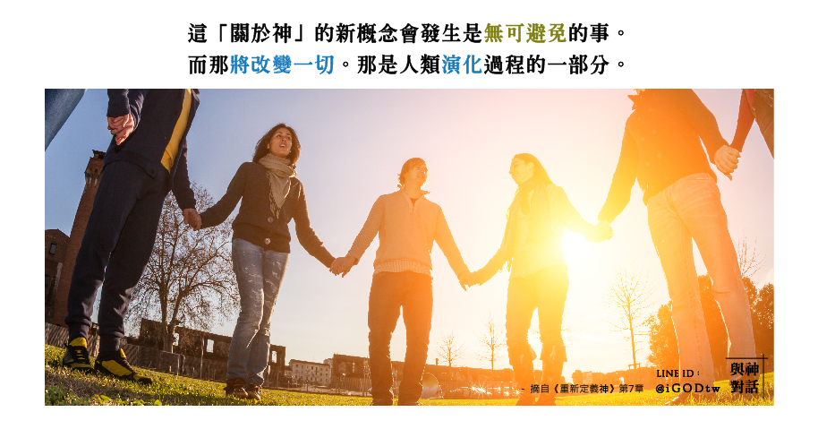 尼爾:好吧,但要讓這發生並非一件容易的事。幾世紀、幾千年以來,大多數宗教都未曾認真地思考過一個 「關於神 」 的新概念───我的意思是,一個真正的新想法,一個激進的新理念。
