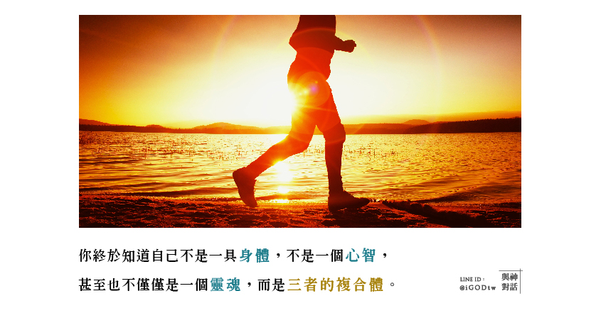 當你被光擁抱時,你與自己的靈魂合併了。你終於知道自己不是一具身體,不是一個心智,甚至也不僅僅是一個靈魂,而是三者(身心靈)的複合體。