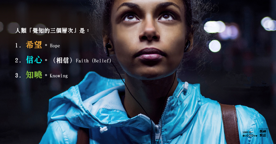 「希望」是覺知的第一個層次。它比「沒有希望」的感覺要好得多,但它是一種基本的覺知層次,因為它暗示著一種在任何情況下正向結果是可能的,但不是一種保證。所以說,一個人要有「希望」。
