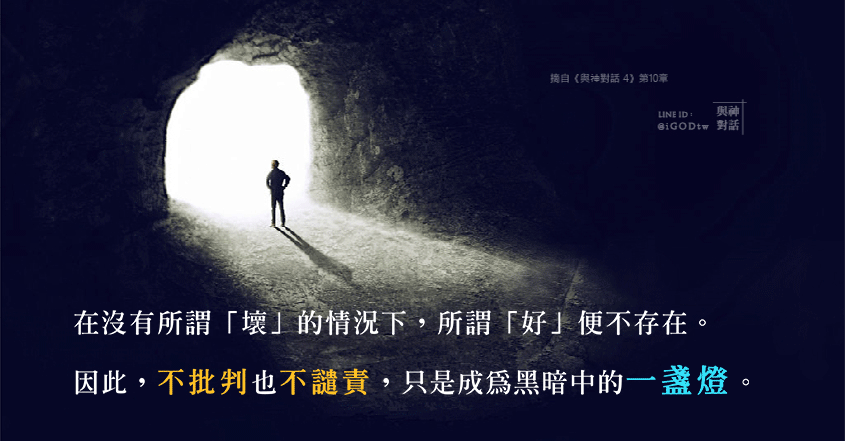 因此,不批判也不譴責,只是成為黑暗中的一盞燈,以此方式你可以去宣布和宣告,表達和實現,知曉和體驗「你真正是誰」,而你生活中所接觸的所有人也可能以「你以身作則所帶來的力量」,去認識「他們真正是誰」。