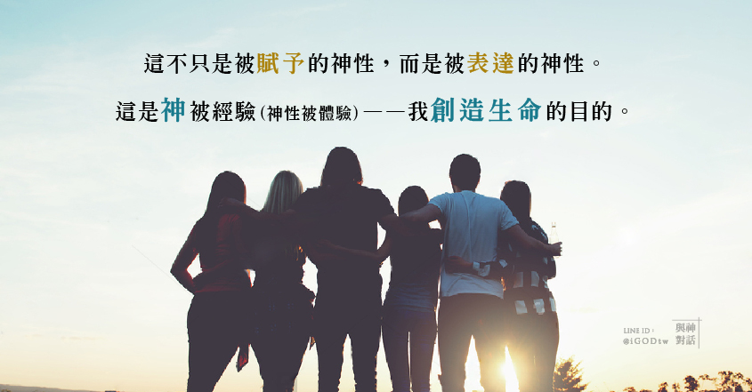 這是被表達(expressed)的神性,而不只是被賦予(bestowed)。這是「神」被經驗(神性被體驗)——而這是我創造生命本身的目的。