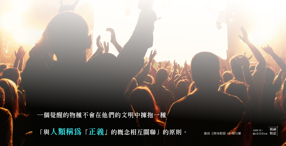- 一個覺醒的物種會言行一致地做他們所說的(do what they say)。人類在一個未覺醒的狀態,經常說的是一回事,做的是另一回事。
