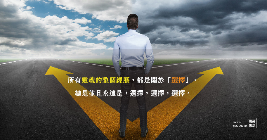 所有靈魂的整個經歷,都是關於「選擇」。總是並且永遠是:選擇,選擇,選擇。(The whole experience of all souls is about choice. Always and forever, choice, choice, choice.)