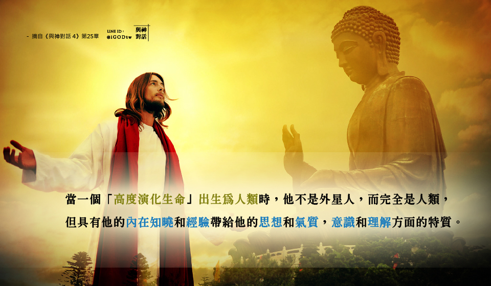 有趣的是,在我已完成翻譯並將於今年在台灣出版的《與神對話 4》中,神清楚地說出:佛陀和耶穌都是以出生為人類的形式來到地球的「高度演化生命」之一。但重點是在「信息的內容價值」,不在「信息使者是誰」。